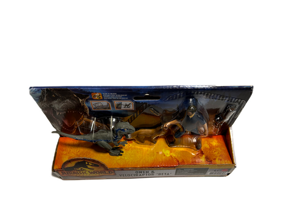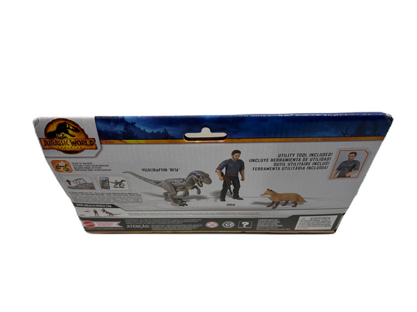 Join the action in Jurassic World Dominion with this Human and Dino Pack! Play as Owen and his loyal companion, the Velociraptor Beta, with these highly detailed action figures. Get ready for endless adventure and excitement with this new addition to your toy collection!