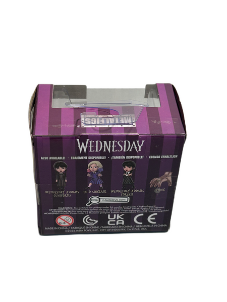 Introducing the Wednesday Metalfigs Enid Sinclair Die-Cast Metal Figure by Jada! This 2.5" figure is perfect for collectors and fans alike with its highly-detailed design. Made from durable metal, it's suitable for ages 8 and up. Add this unique piece to your collection and showcase your love for Wednesday Metalfigs!